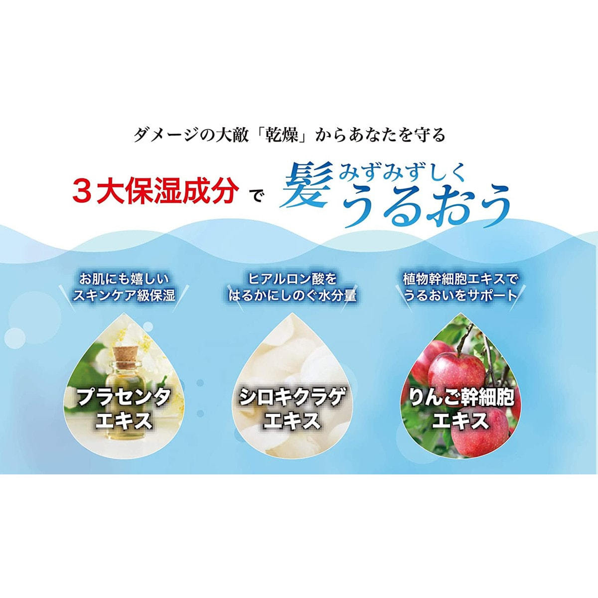 髪や頭皮にうるおいを与え、高い保湿力を発揮します。