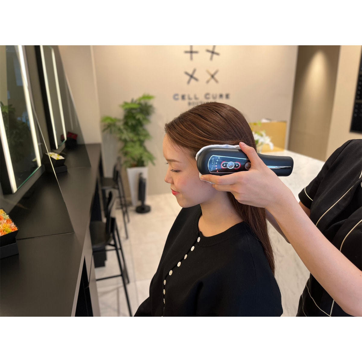 高性能家庭用美顔器「セルキュア4T++」は医療向け特許取得の『干渉波』の技術により体の組織深くに浸透し、細胞レベルで働きかけることにより、わずか5分で見違えるような美顔への変身を実現します。