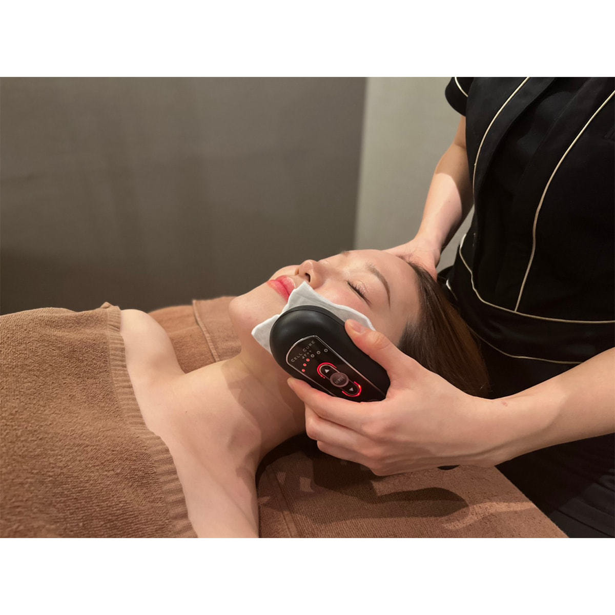 干渉波とEMSで細胞を活性化し、表情筋を刺激します。