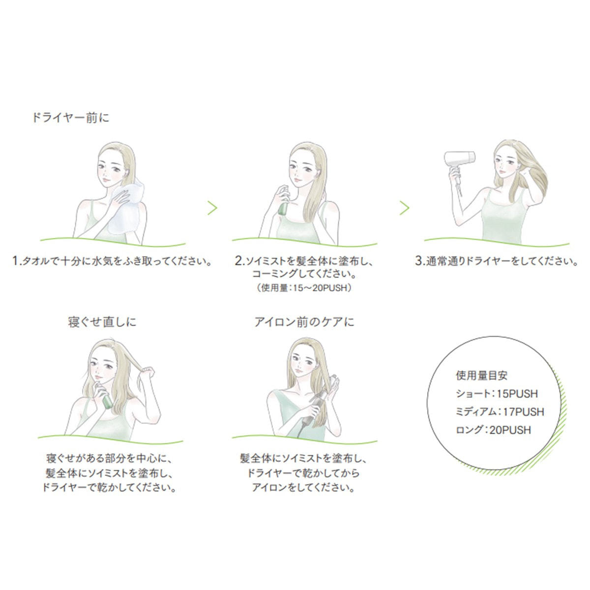 寝ぐせがある部分を中心に、髪全体にソイミストを塗布し、ドライヤーで乾かしてください。